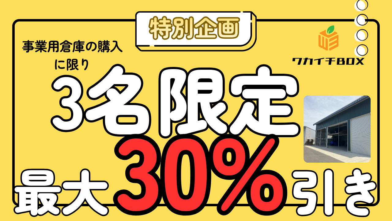 【限定3名様】事業用倉庫「最大30%OFF」特別キャンペーン実施中!